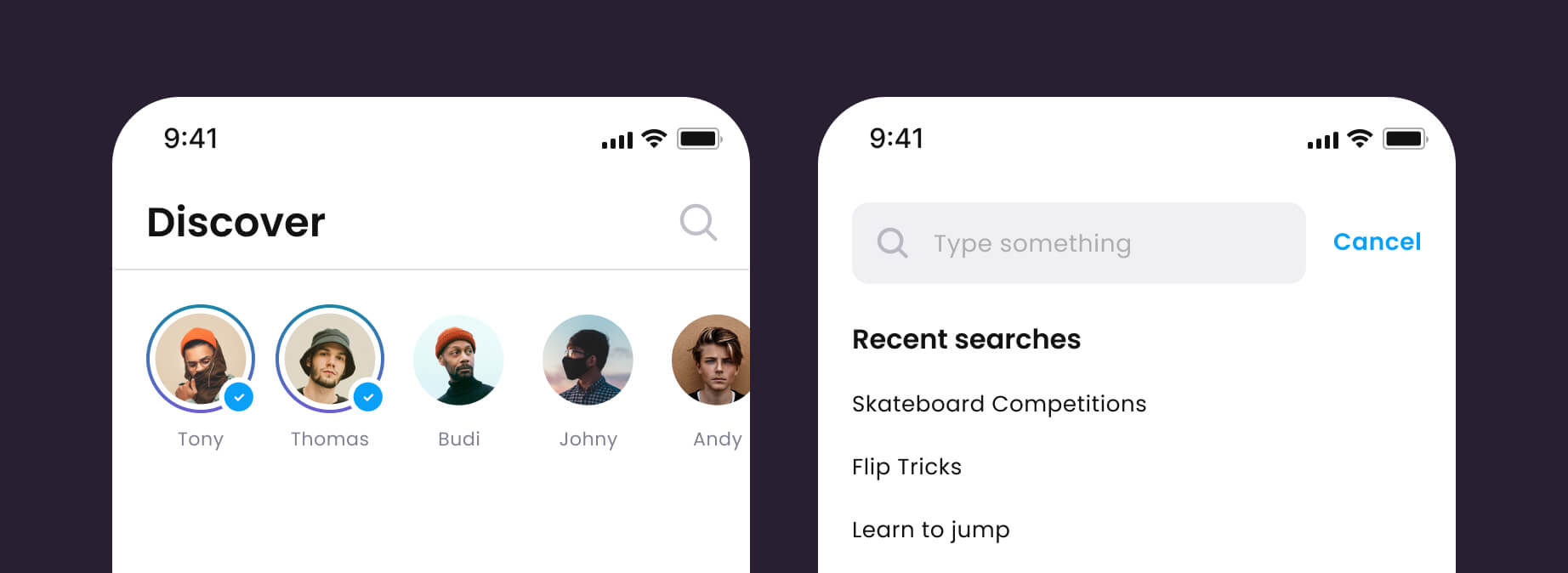 Tapi setelah melihat lihat aplikasi lain, saya menemukan banyak variasi layout untuk design pencarian.