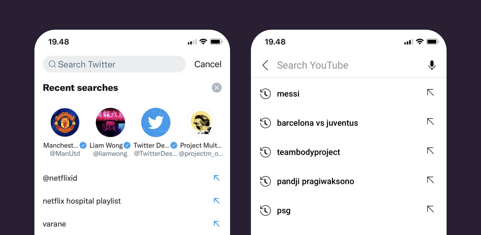 Dibawah ini adalah contoh design pencarian dari Youtube dan Twitter