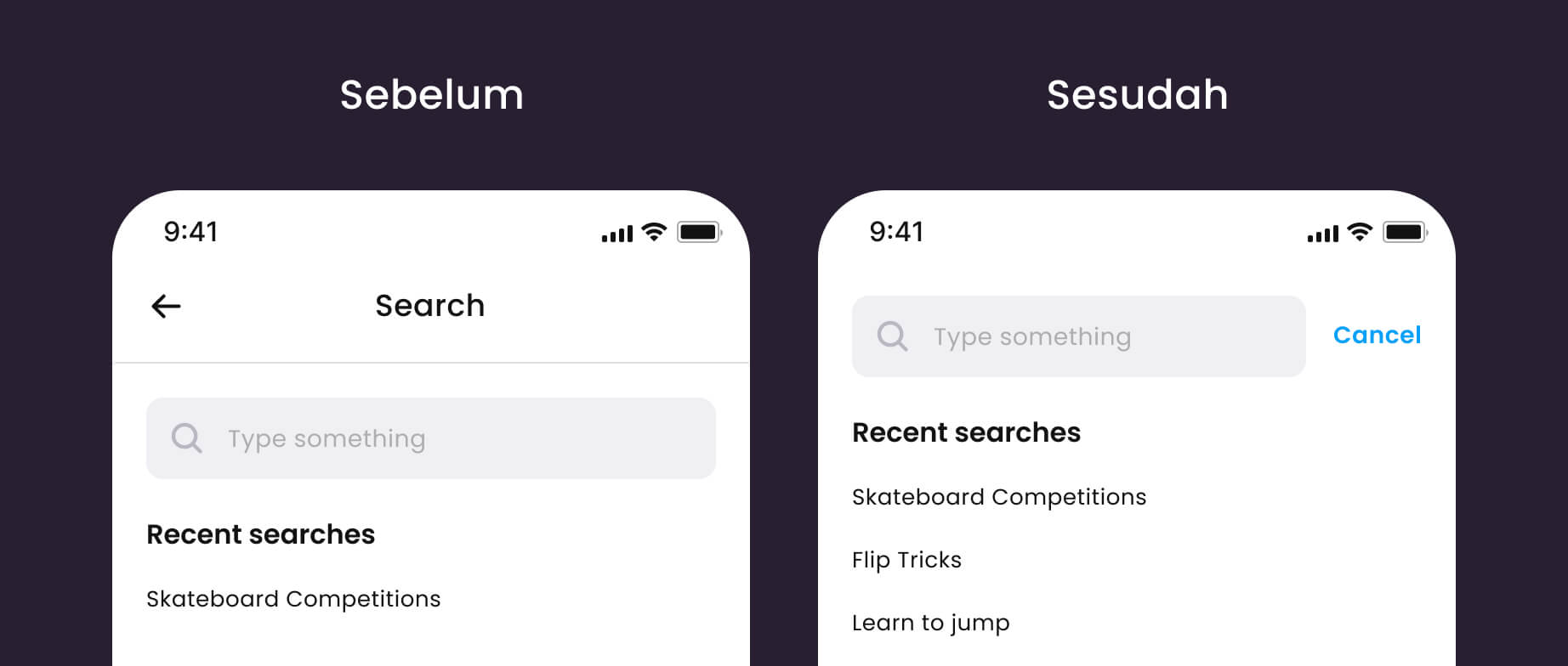 Dulu ketika membuat design pencarian pada aplikasi, saya selalu membuat design seperti dibawah ini. Saya pikir itu sudah bagus dan mudah dipahami.