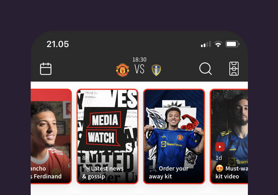 Akhirnya mencoba beberapa aplikasi dan menemukan konsep story di aplikasi Manchester United yang pola design nya berbeda dari story pada umumnya.