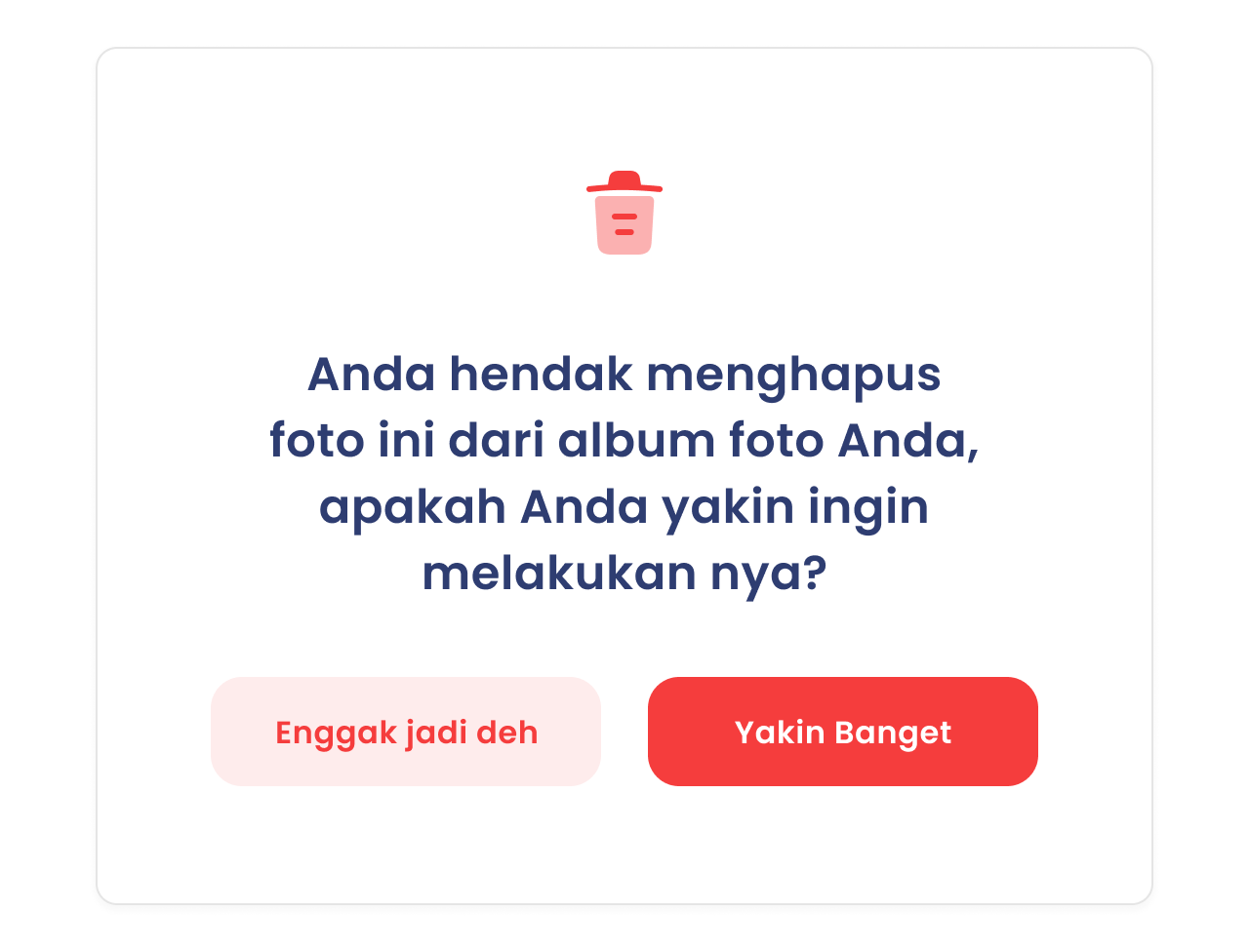 - Konsisten - Tidak, Kalimat konfirmasi nya bernada formal, kalimat di tombol nya bernada santai