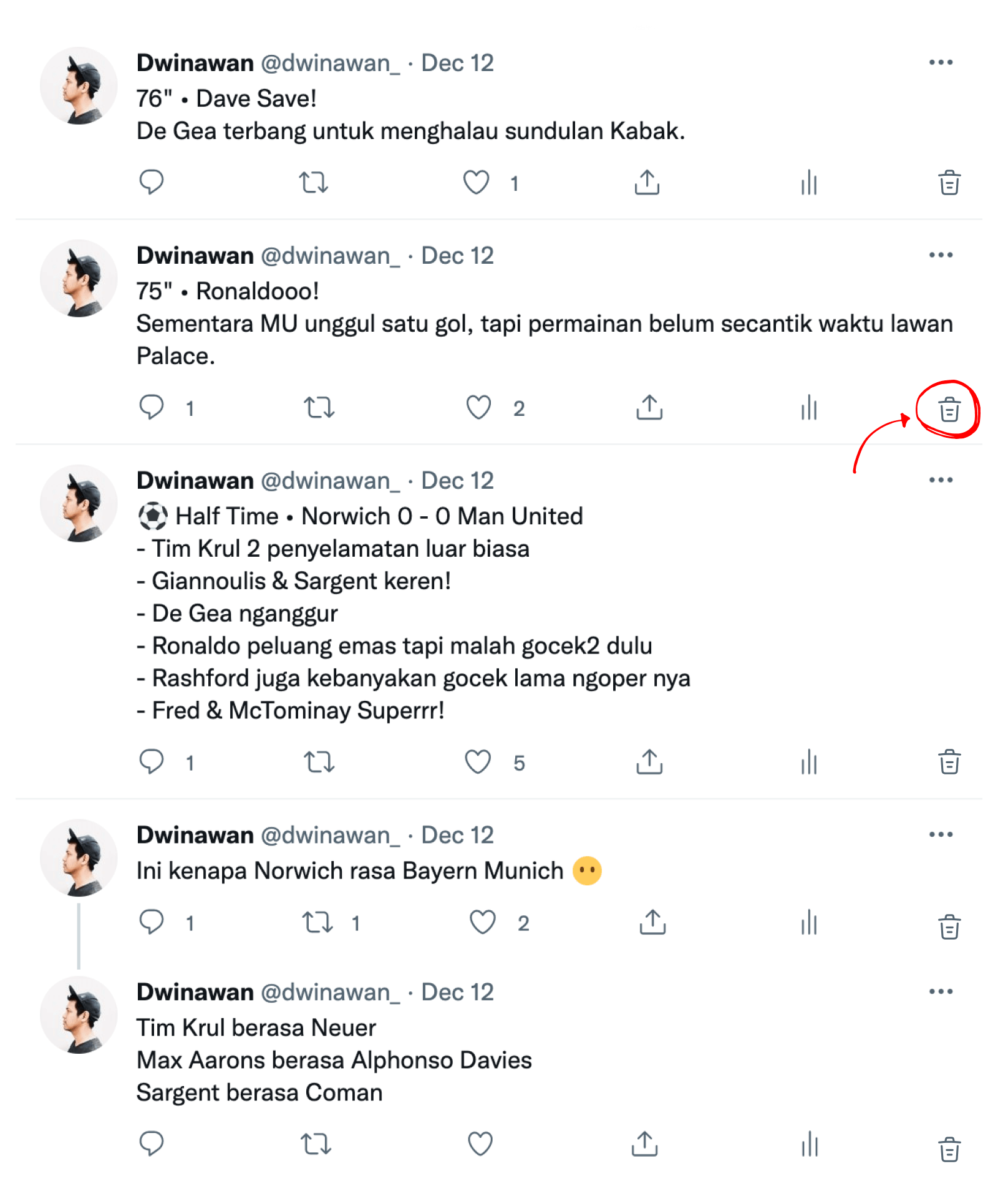 Apakah langsung terhapus? tentu tidak, sistem akan menanyakan apakah user yakin akan menghapus tweet ini? baru setelah itu tweet akan terhapus ketika user memencet tombol konfirmasi untuk menghapus tweet.