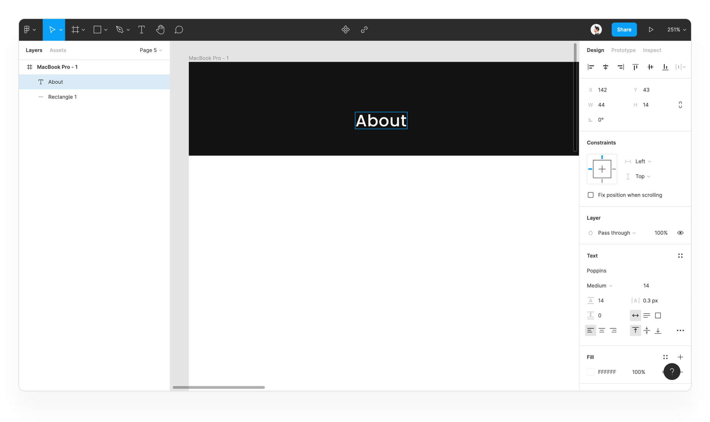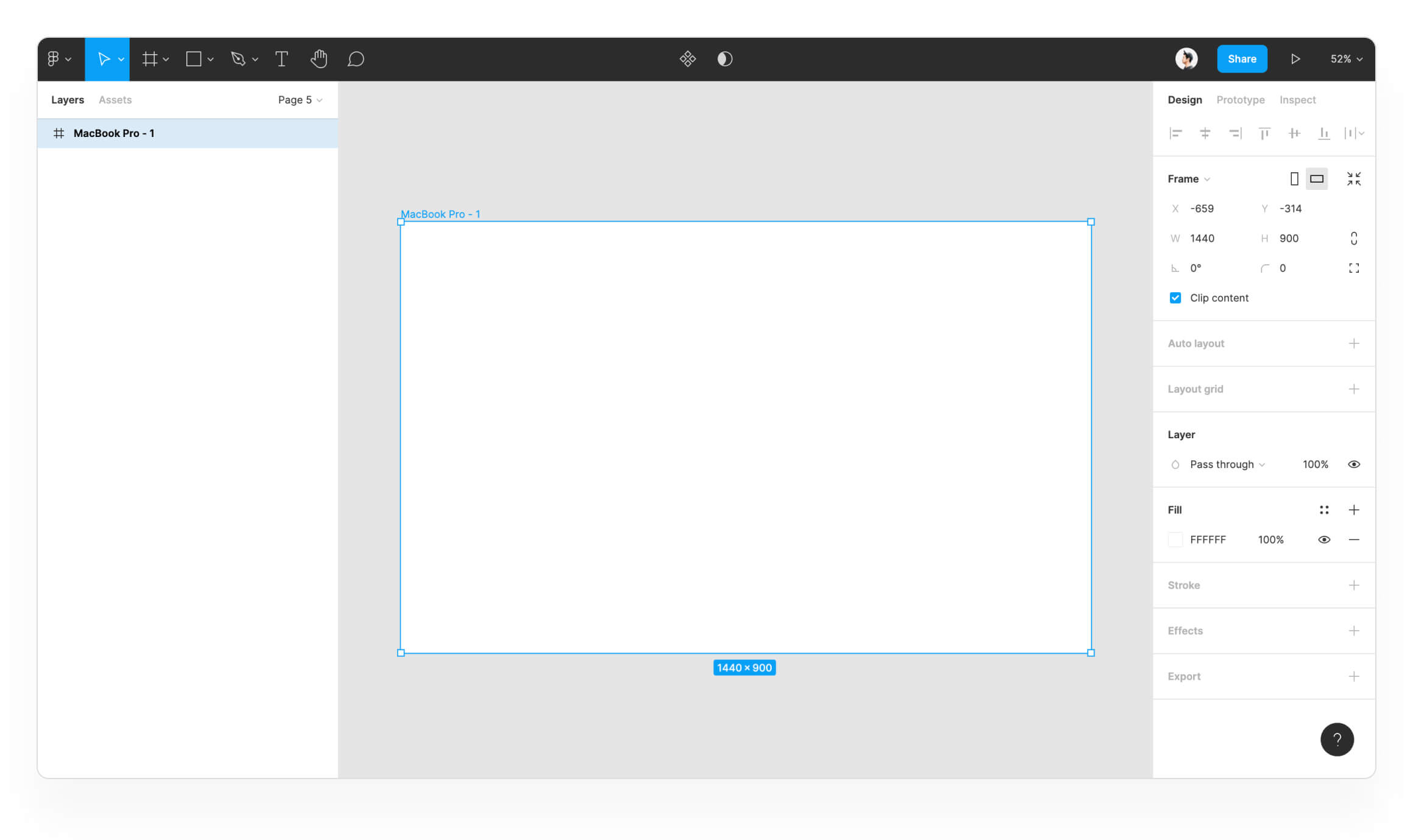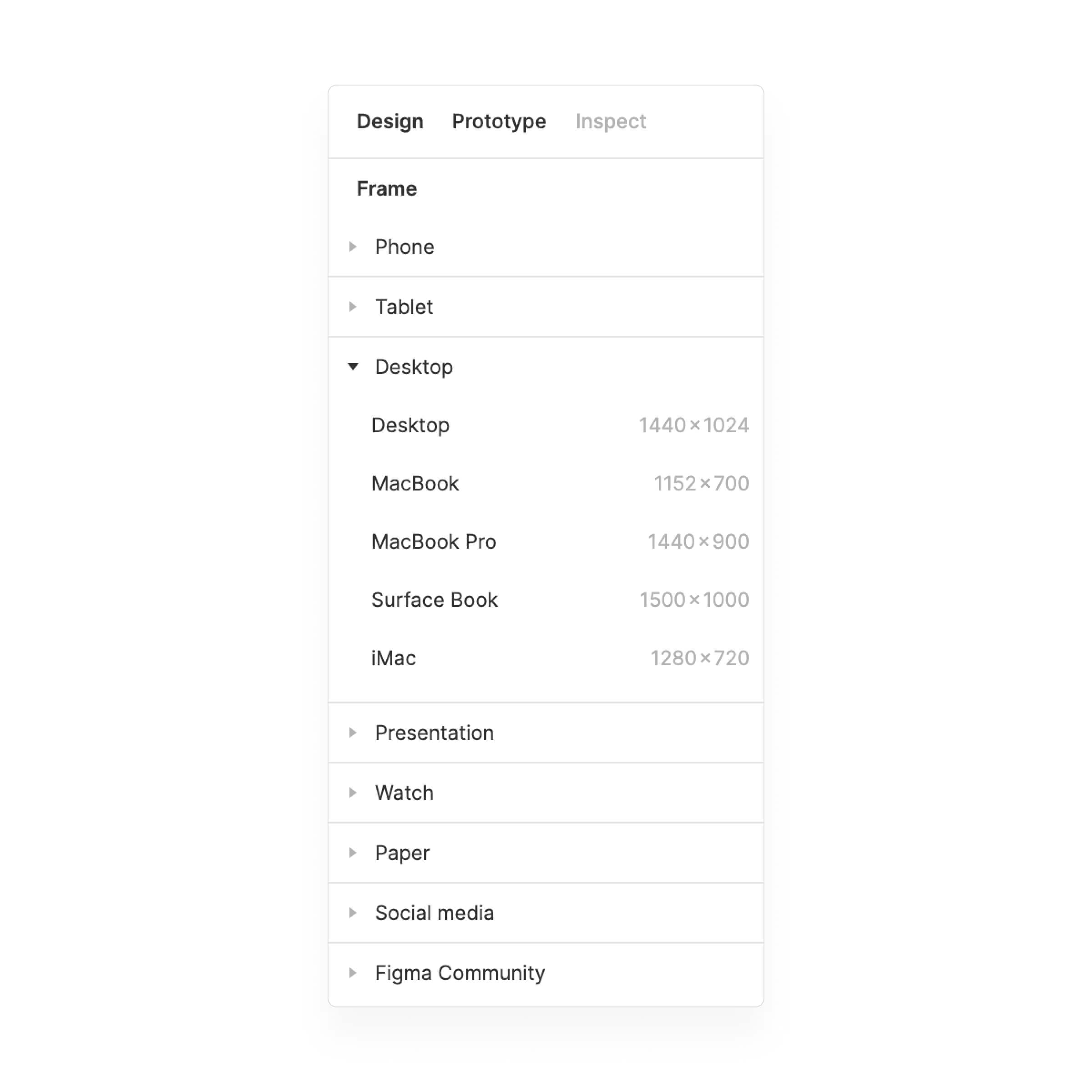 Kita bisa membuat frame dengan ukuran desktop. Saya biasa menggunakan ukuran 1440 x 900. Tekan F untuk mulai membuat frame lalu disebelah kanan akan ada pilihan ukuran.