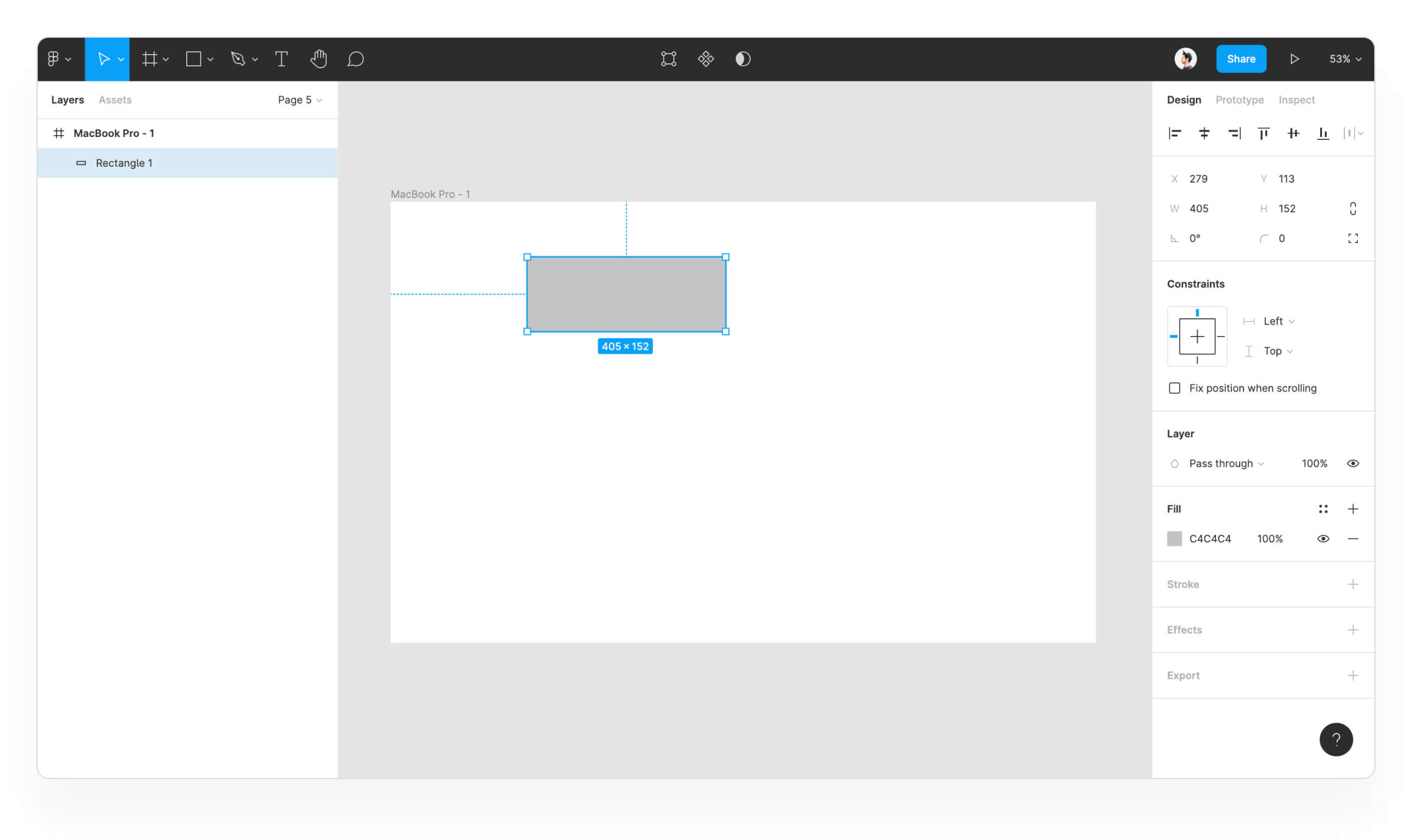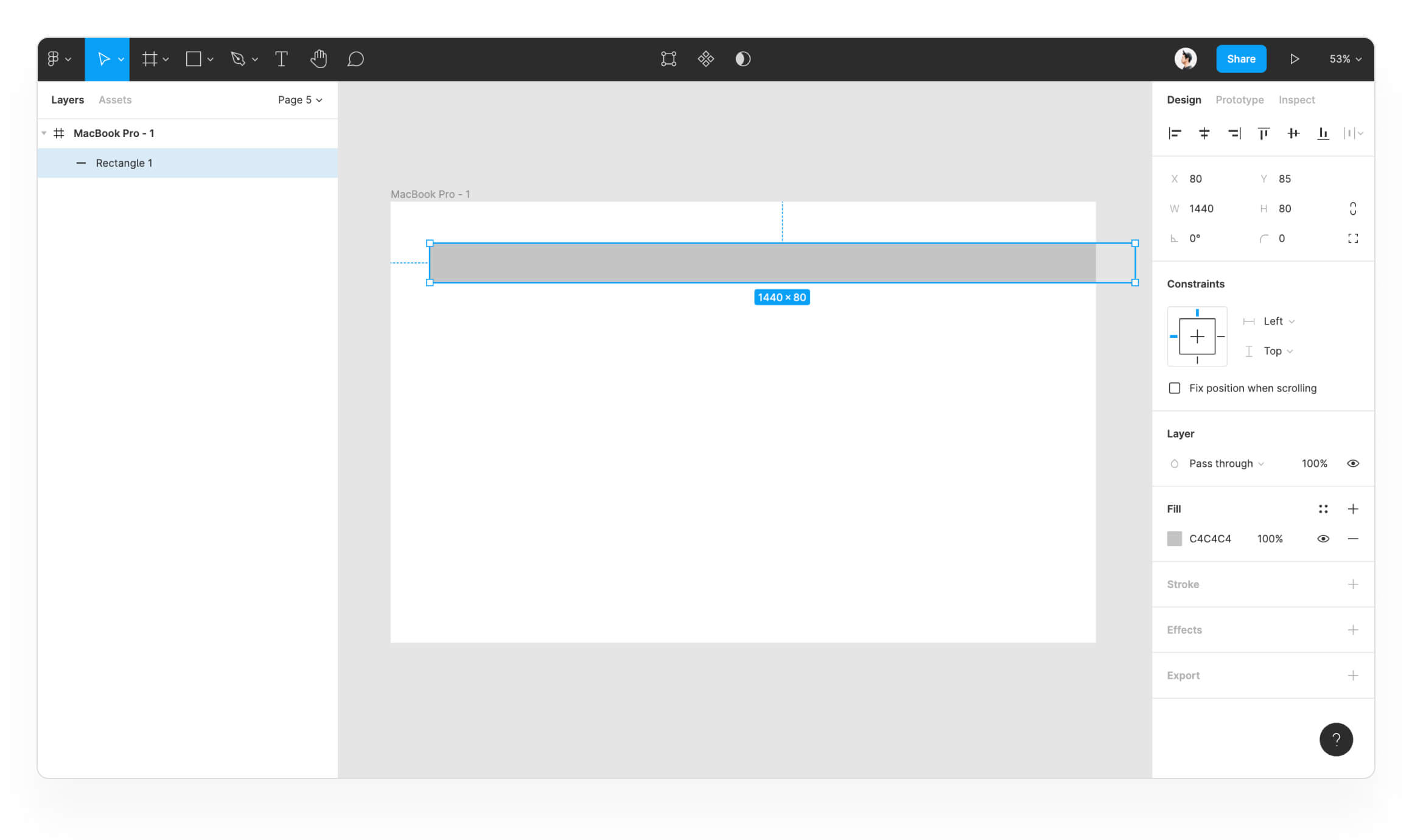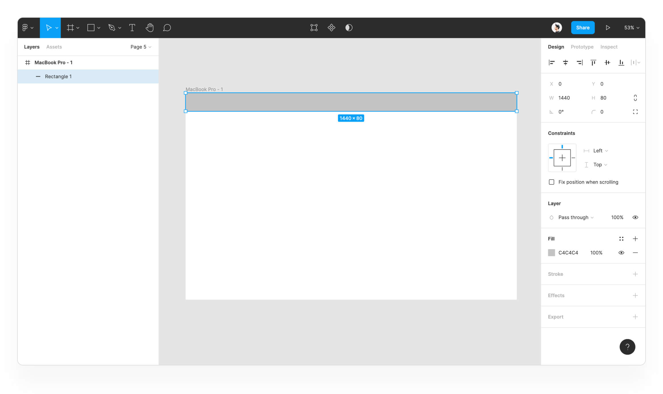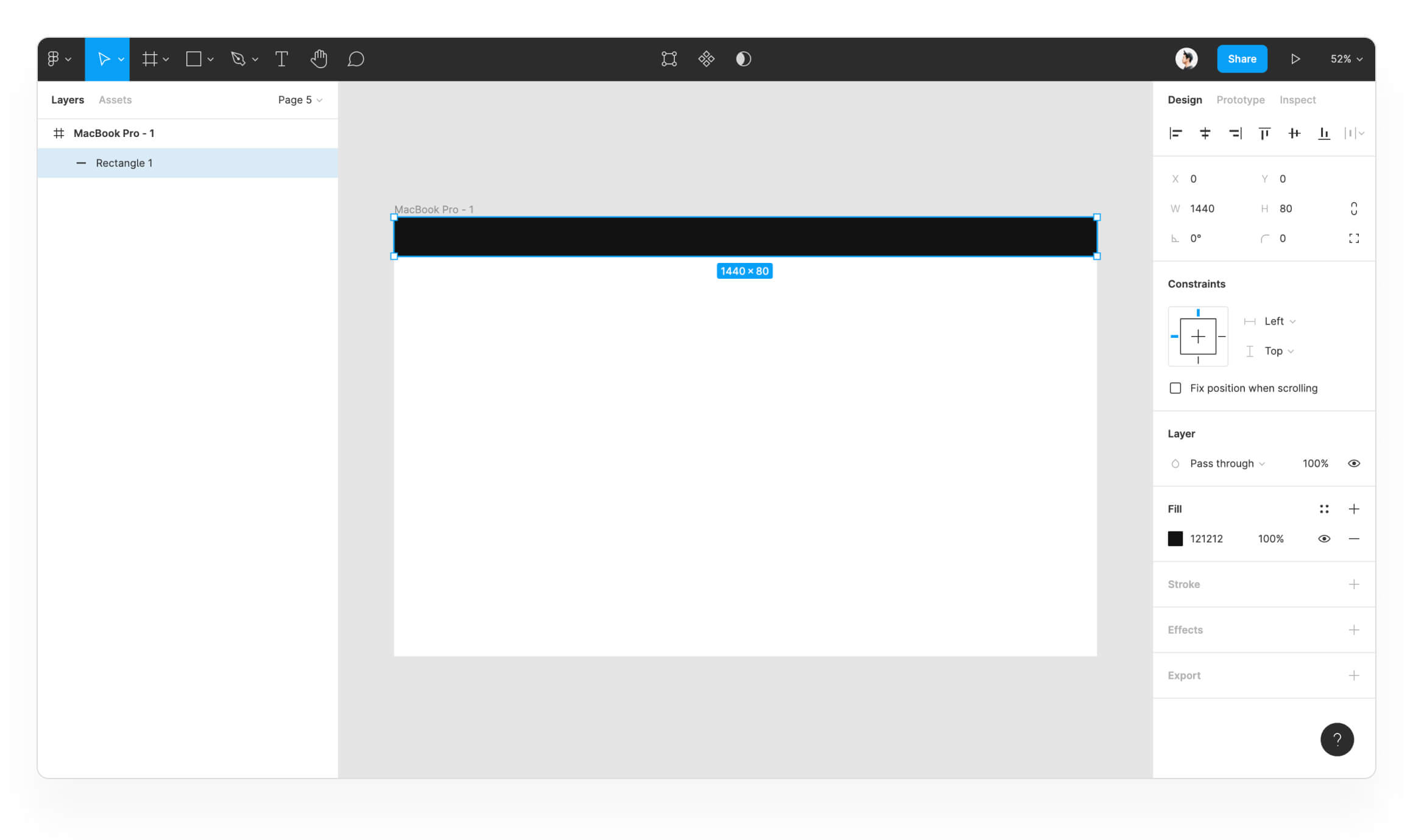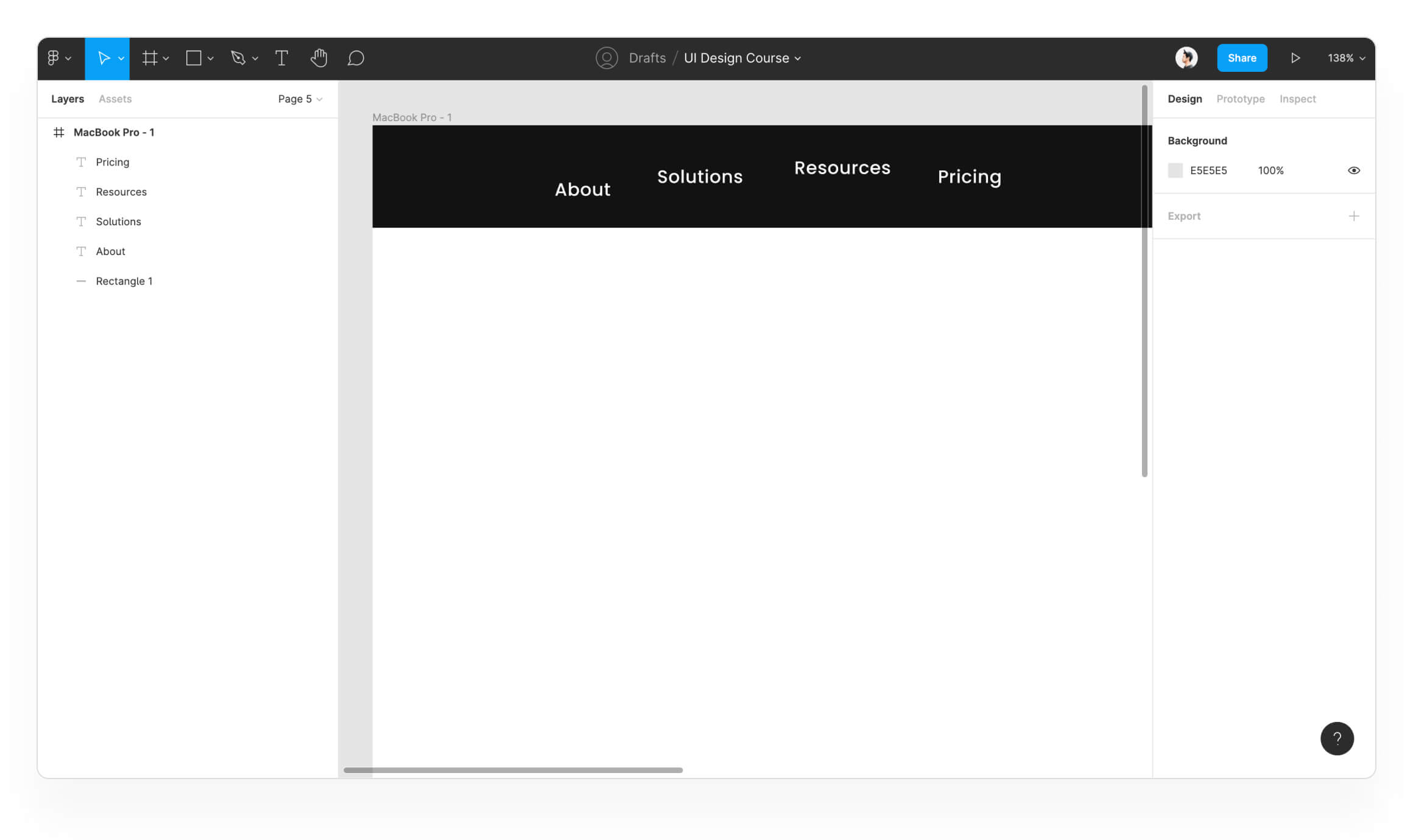 Untuk membuat area navigasi kita bisa menggunakan Rectangle. Tekan R untuk mengaktifkan Rectangle lalu gambar bebas di dalam frame sehingga akan muncul kotak seperti ini