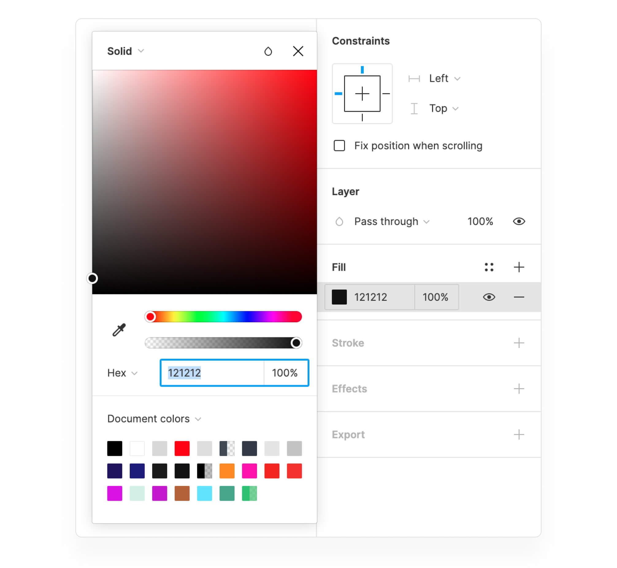Lalu ganti warna background nya menjadi hitam (#121212) dengan mengklik toolbar sebelah kanan di bagian Fill