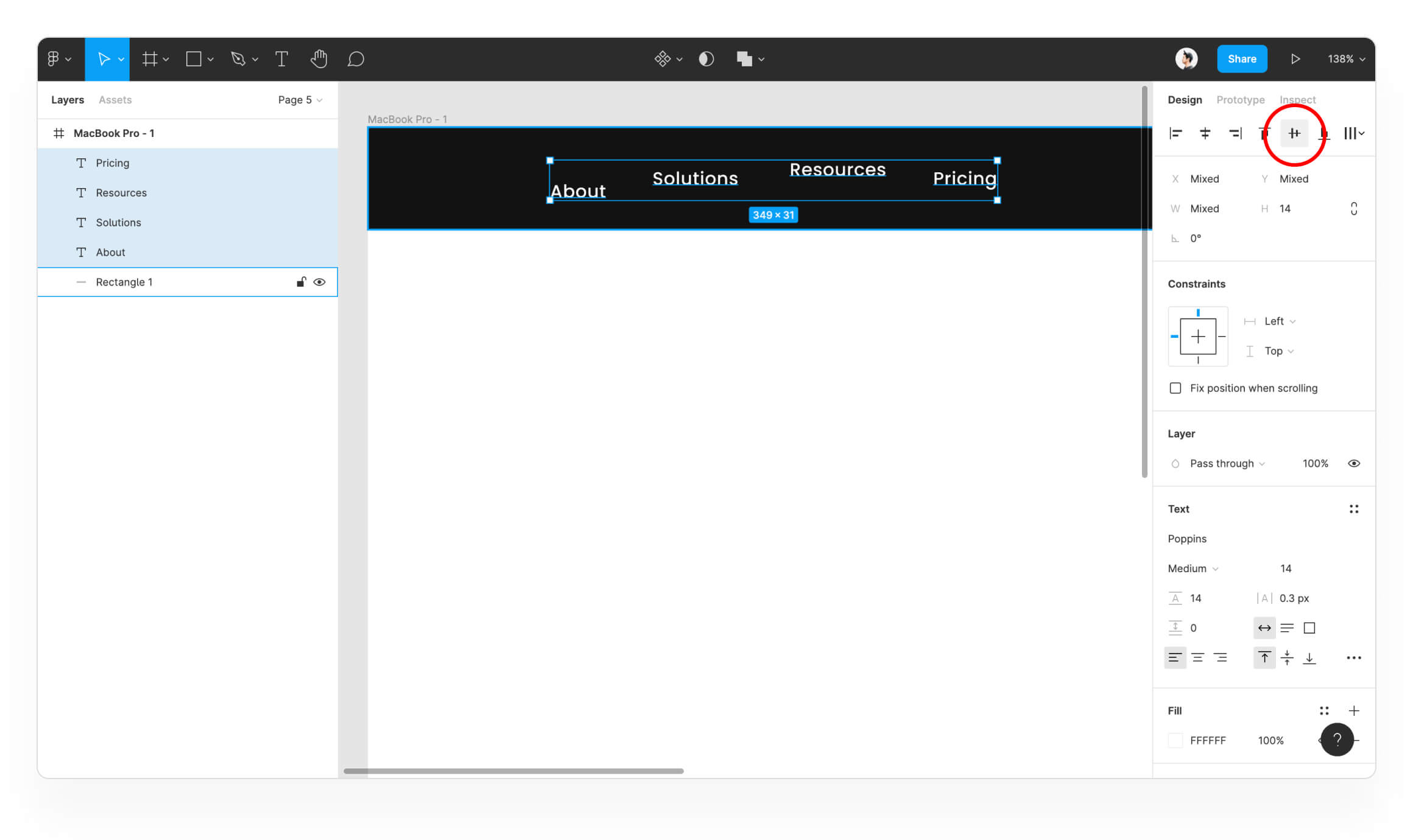 Setelah itu select semua teks (Shift tahan lalu klik teks nya satu per satu). Setelah itu klik icon yang dilingkari merah di kanan untuk meratakan semua teks nya