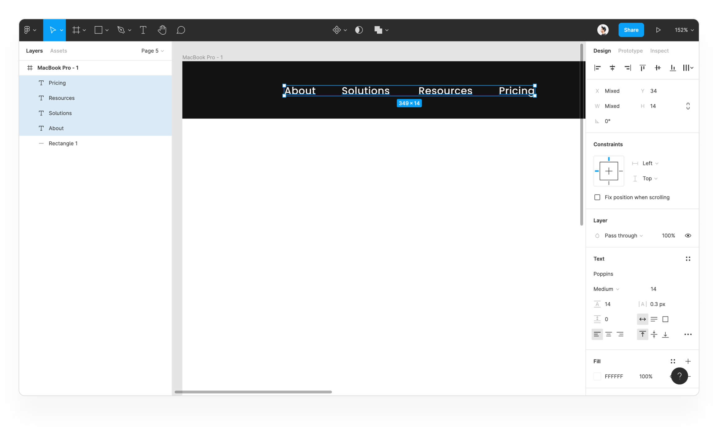 Untuk area navigasi ini kita menggunakan ukuran tinggi yang sering digunakan oleh banyak website yaitu 80px. Untuk lebarnya sesuai dengan lebar frame yaitu 1440px. Jadi untuk area navigasi kita akan menggunakan ukuran 1440 x 80.
