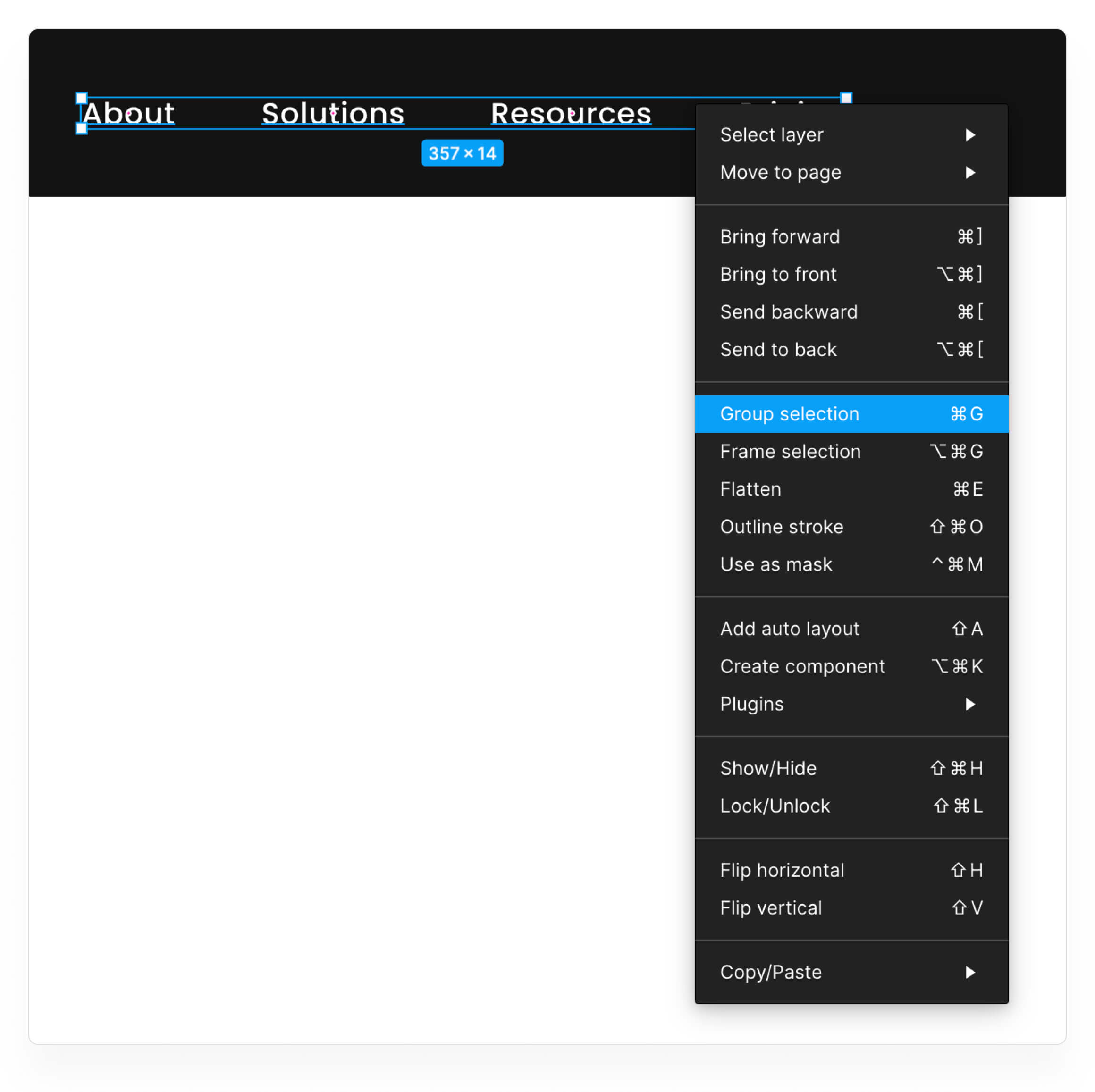 Setelah itu kita akan membuat grouping agar lebih mudah mengatur posisi teks. Caranya: