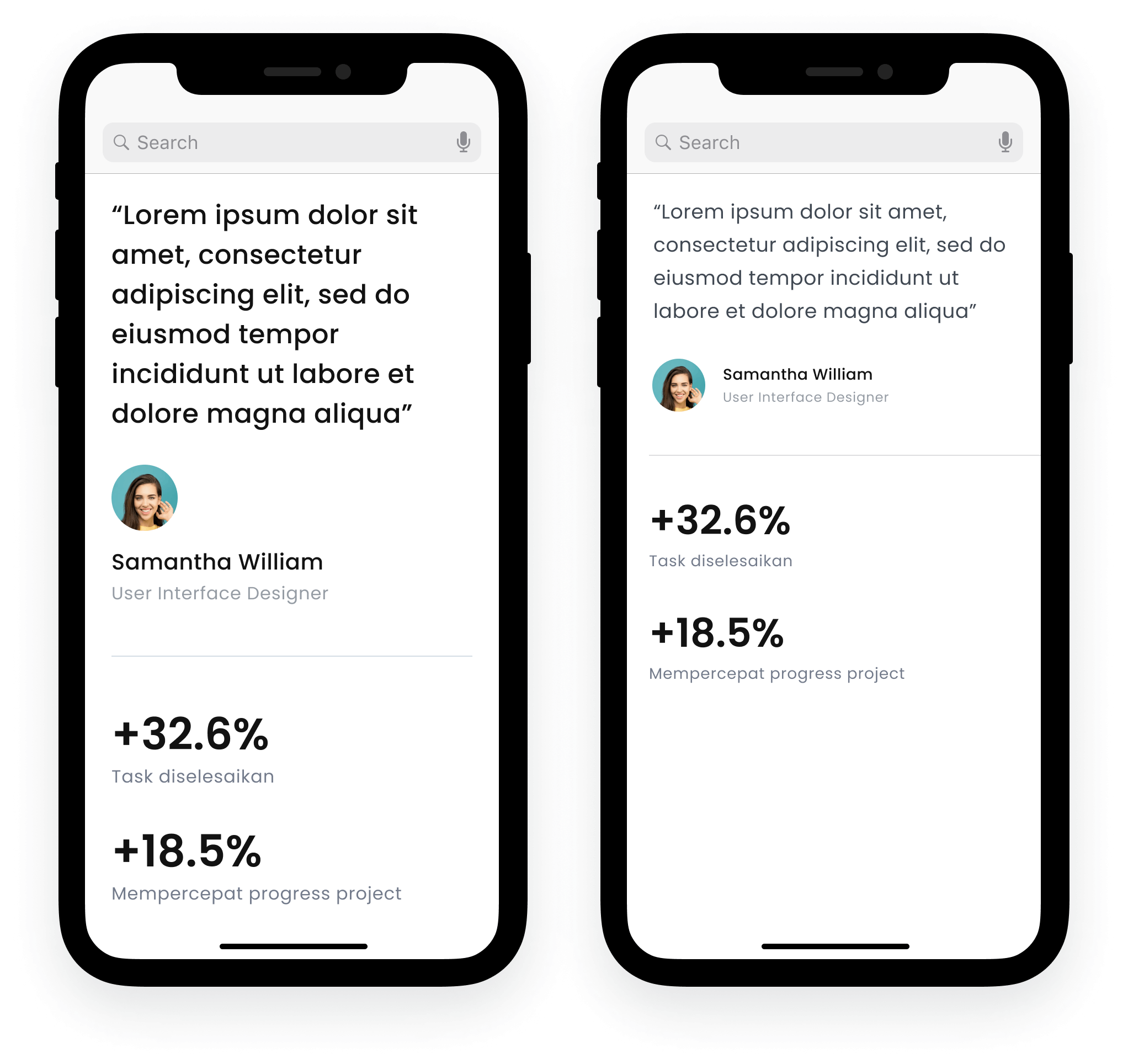 Pertanyaan berikutnya adalah kenapa teks pada bagian testimonial dan angka performa jadi lebih besar?