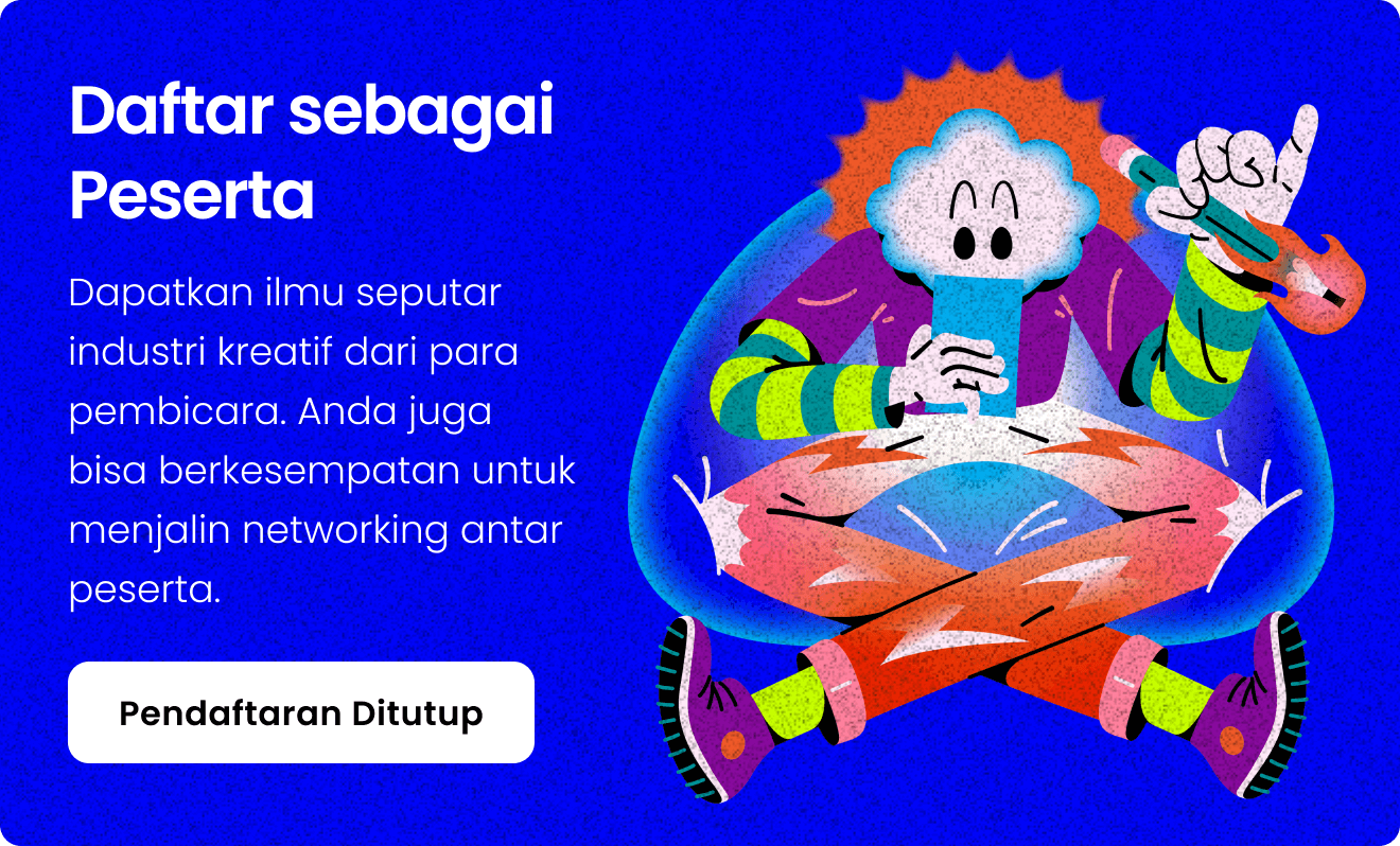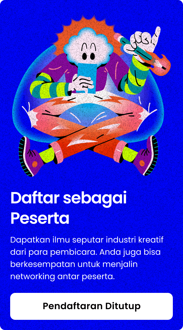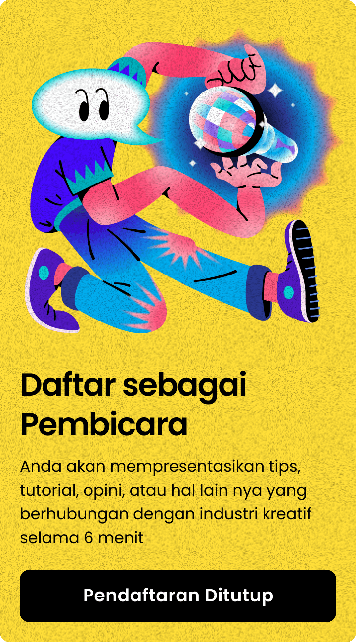 Ini adalah acara kumpul semua pelaku industri kreatif. Mulai dari UI/UX Design, Branding, Ilustrasi, Icon, Fotografi, Marketing, Content Creation dan berbagai bidang kreatif lain nya.
