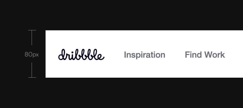 Dribbble using 80px for the navigation area. For the text or link inside it they use 14px.