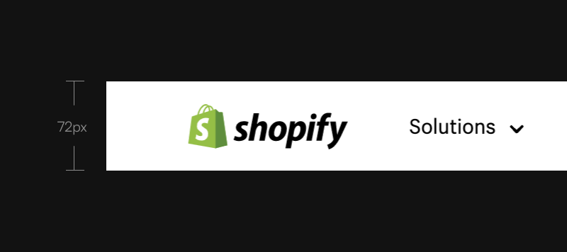 Shopify using 72px for the navigation area. For the text or link inside it they use 16px.