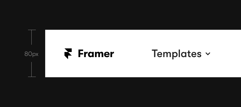 Framer using 80px for the navigation area. For the text or link inside it they use 18px.