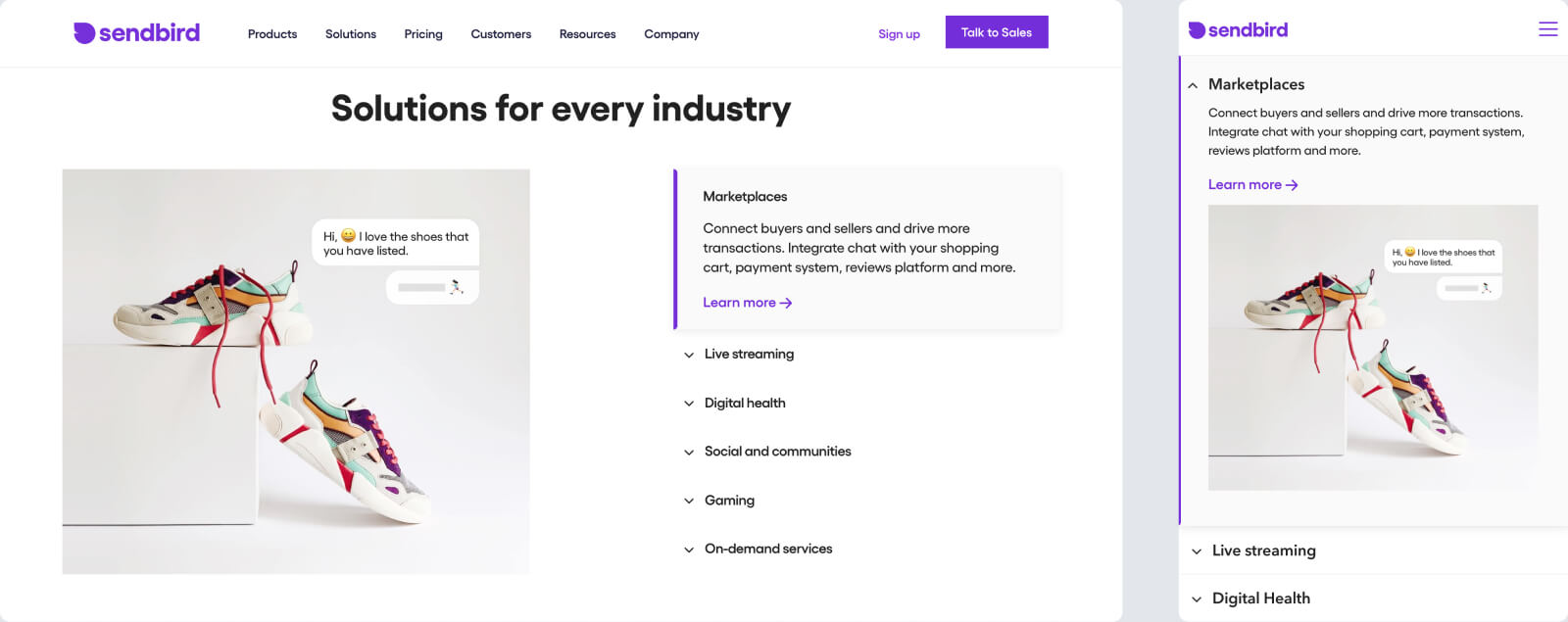 Jangan ragu untuk merubah layout pada design mobile jika tujuan nya agar informasi yang ditampilkan menjadi lebih jelas, seperti contoh dibawah ini, pada versi desktop, foto berada di luar box konten, pada versi mobile, foto berada di dalam box konten.