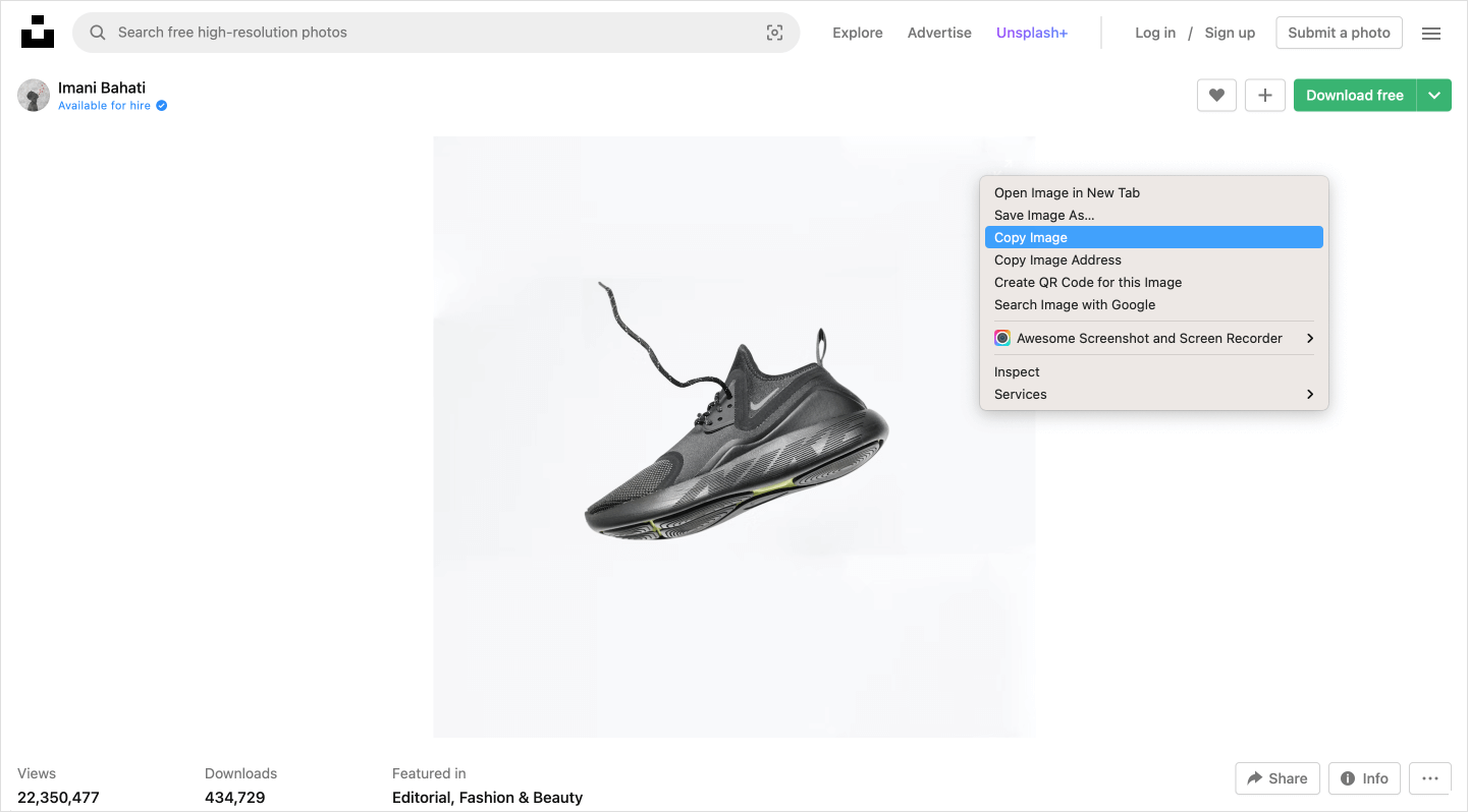 Untuk gambar sepatu nya saya menggunakan dari Unsplash (Klik disini).