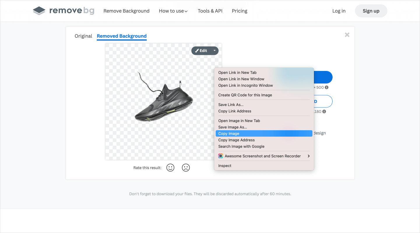 Buka website remove.bg (Klik disini). Lakukan Paste (Command + V atau Ctrl + V) lalu setelah
