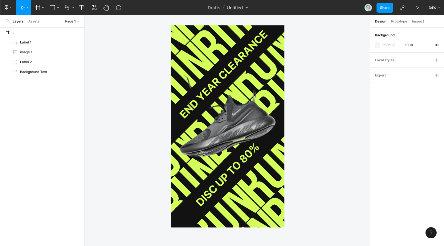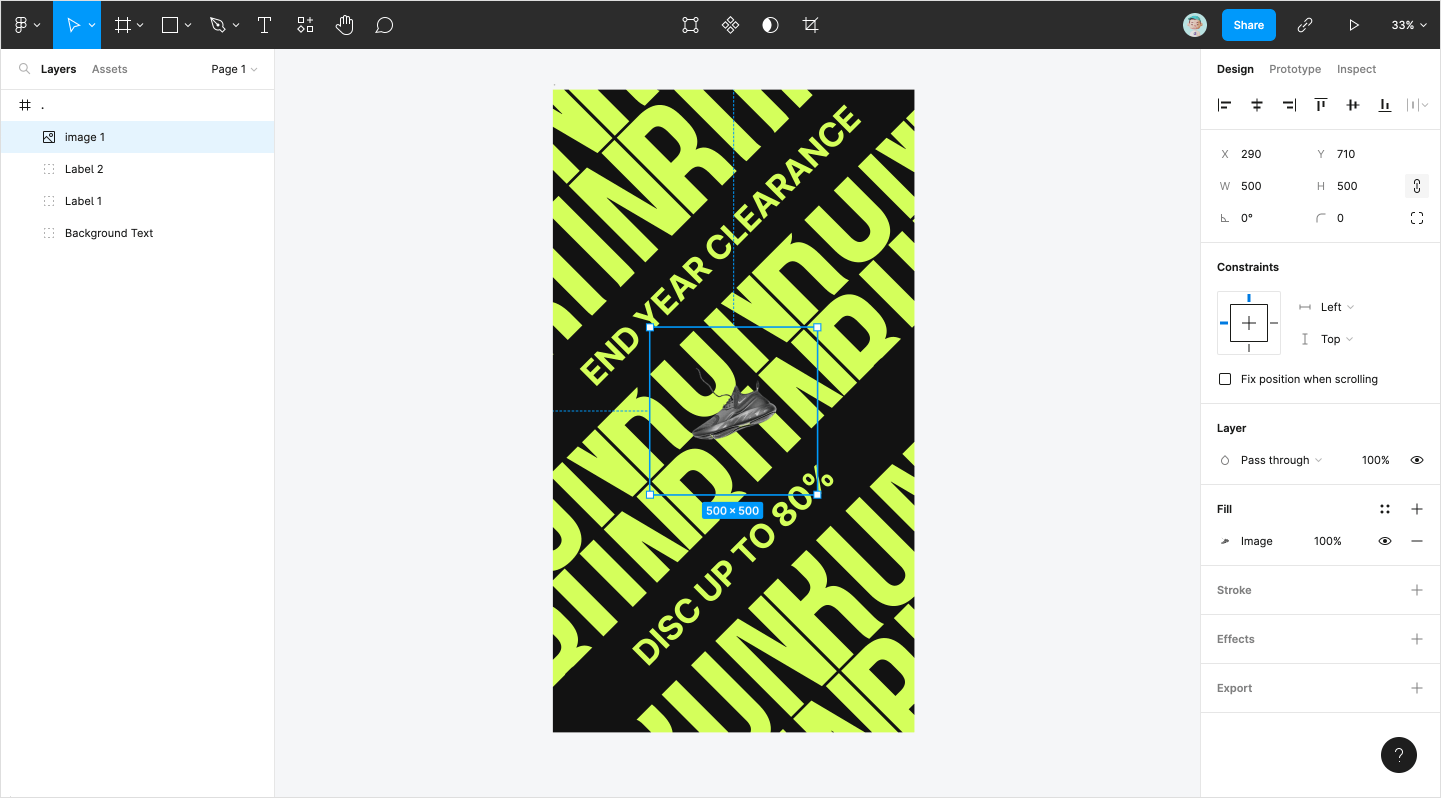 Kembali ke Figma, select Frame nya lalu lakukan paste dan gambar sepatu yang tidak ada background nya akan muncul disitu.