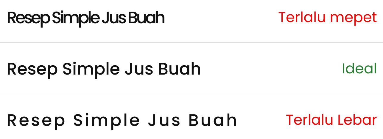 Untuk teks non-kapital atau lowercase, jarak hurufnya jangan terlalu berjarak.